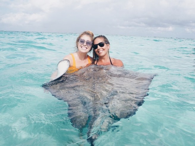 Off to the famous Stingray City! I highly recommend Red Sail Sports. We went on 3-4 excursions with them and loved every single one. We did the Stingray Sandbar and Rum Point Sail from 10 a.m. to 3:30 p.m. Amazing experience and staff, Stingray City is an experience of a lifetime! When you return from an exhausting day of kissing Stingrays and drinking Prosecco on a luxury catamaran, catch a cab to The Cracked Conch for a fun view, snorkeling and sub par food and drink.